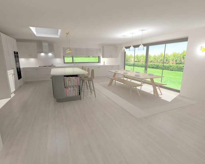 Project scope: Being invited into our clients' home at the early design stages allowed us to offer advice to rework the floor plan, which was causing them concerns. Suggested architectural plans meant there would be a lack of natural light in their proposed kitchen. We encouraged them to relocate their kitchen and dining space into the new extension to ensure they made the most of the natural light, but to also allow easy access to the garden to make the most of indoor / outdoor living. We helped to design their new kitchen cabinetry, paying particular attention to finishes and fittings. We also suggested that their existing kitchen could become a snug - this room lacked natural light, which we decided to use to our advantage and make it a sunken cosy space.